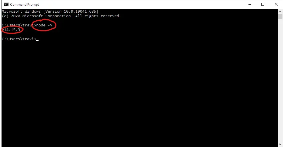 In the Command Prompt, type node -v and press Enter. This command tells Node.js to start, but simply display the installed version, and exit.