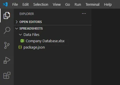 You can see the Excel file inside Data Files folder and you can see package.json in the project root.